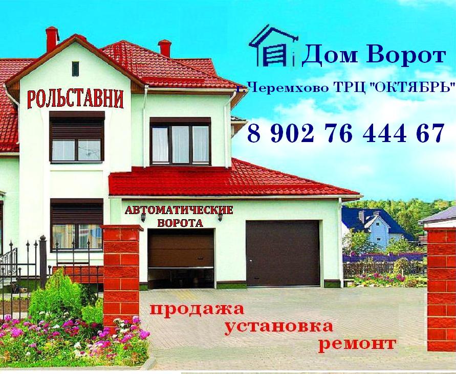 Компания «Дом Ворот» предлагает Рольставни - идеальное решение звуко и теплоизоляции! Вы автомобилист? Тогда для вас гаражные, секционные автоматические ворота! А ещё у нас есть шлагбаумы!!!(Продажа, установка, ремонт, бесплатный замер) Наш адрес: г. Черемхово ул. Первомайская 164 , ТРЦ «ОКТЯБРЬ» Компания Дом Ворот - ваше спокойствие - наша работа!!!
